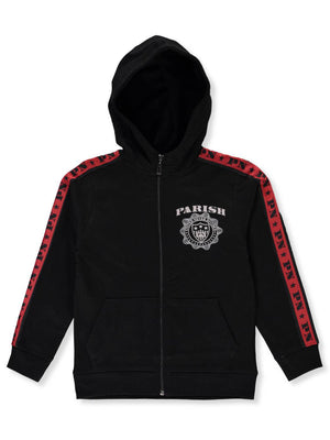 French terry construction Rib-knit trim Split kangaroo pockets Logo taping down sides Full zip Logo graphic on chest and back 100% cotton Machine wash cold, inside out Imported